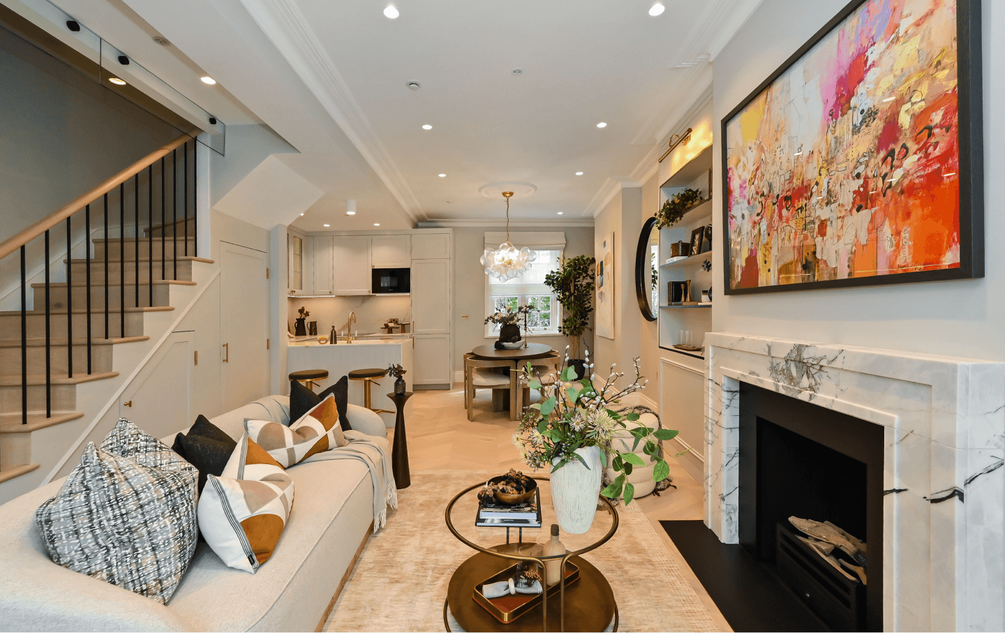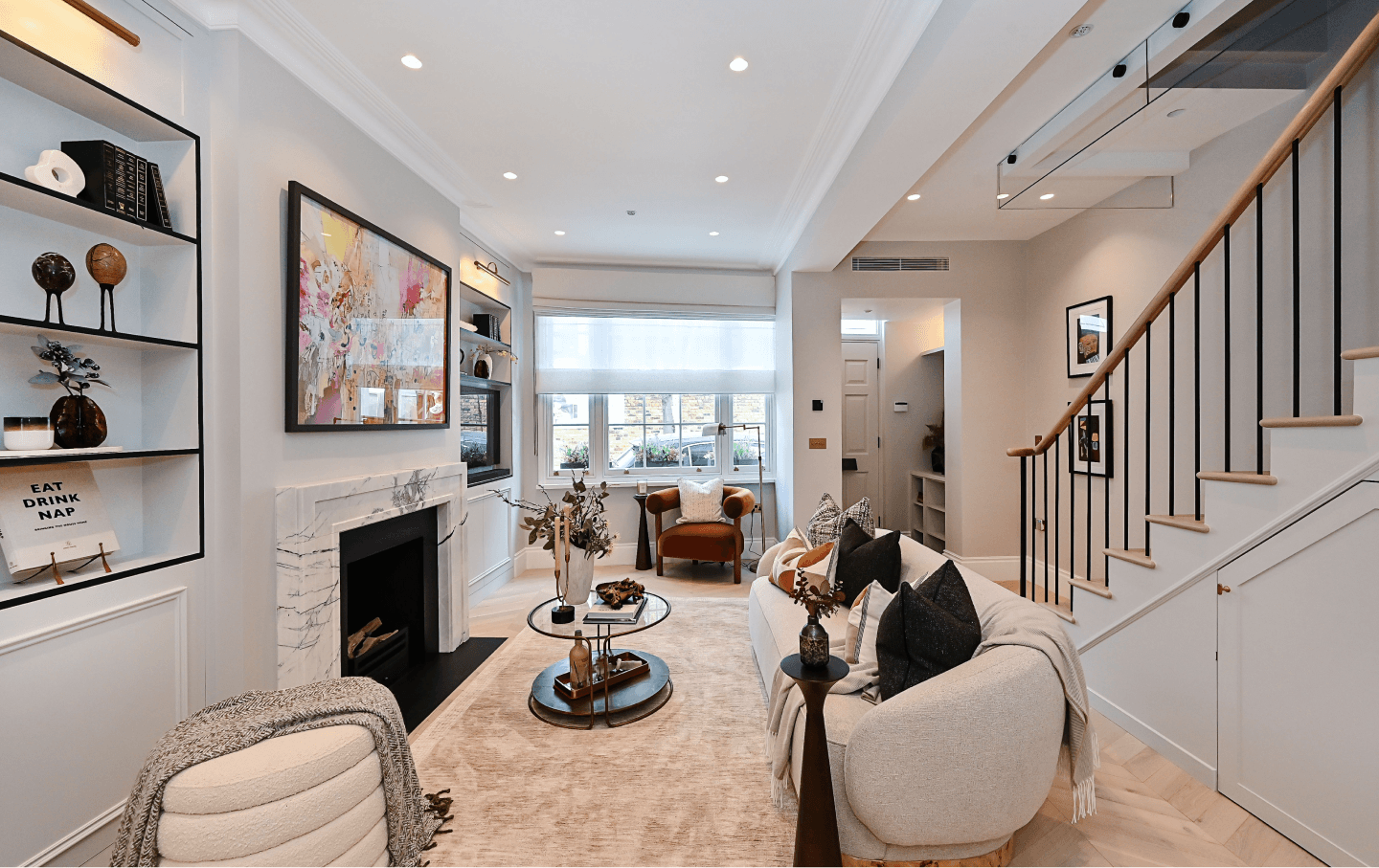 Opposite a striking cherry blossom tree within a peaceful residential enclave, this quintessential South Kensington terrace has been thoughtfully reimagined through a refined design lens. Arranged over three expansive floors, the property offered a rare opportunity to craft a contemporary yet sophisticated home, where clean architectural lines meet tactile, layered finishes and integrated modern technology-resulting in a timeless expression of elevated city living.